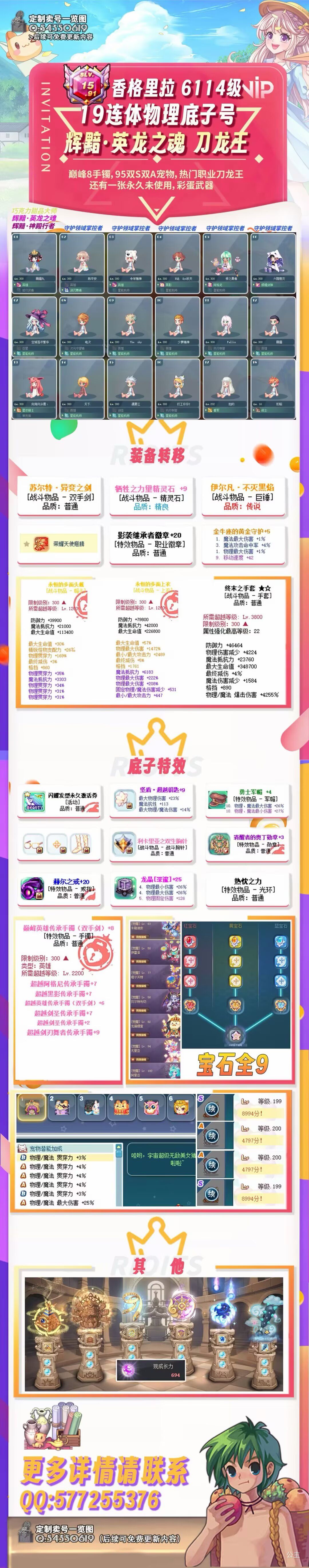 蛇龙区 6000级95s 多连体彩蛋物理号已开13格子 带5个守护均热门职业 毕业永恒 6K全装 可刀 (带百速女巫 物理雪糕) 可裸号