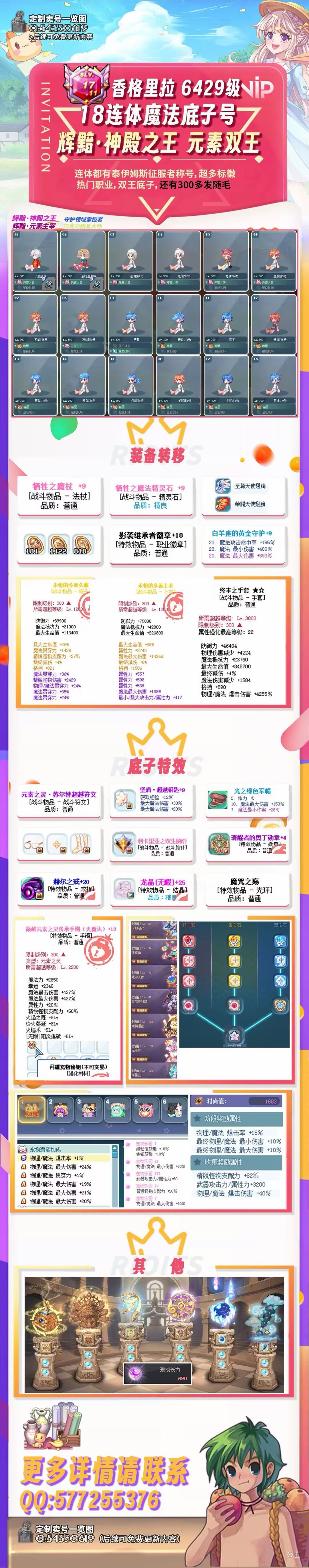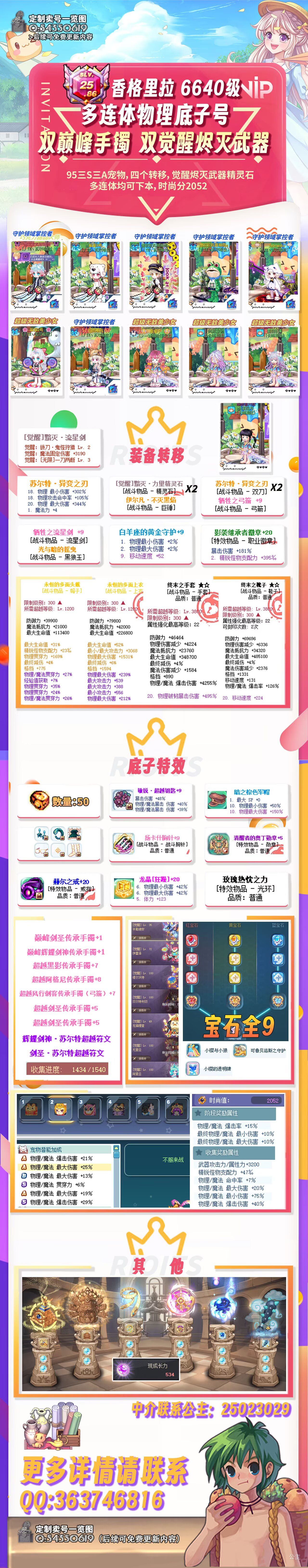 香格里拉 6423级 12连体魔法底子号 永久白金 红蝴蝶结 双巅峰手镯 97/95S宠物 守护意志 巧克力称号 多连体热门职业 四个烬灭觉醒 五个转移 时尚分3000+